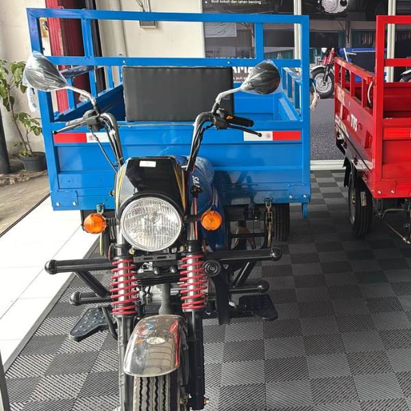 3 roda memberikan keseimbangan lebih baik saat membawa beban berat dibanding motor 2 roda, mengurangi risiko oleng atau jatuh.